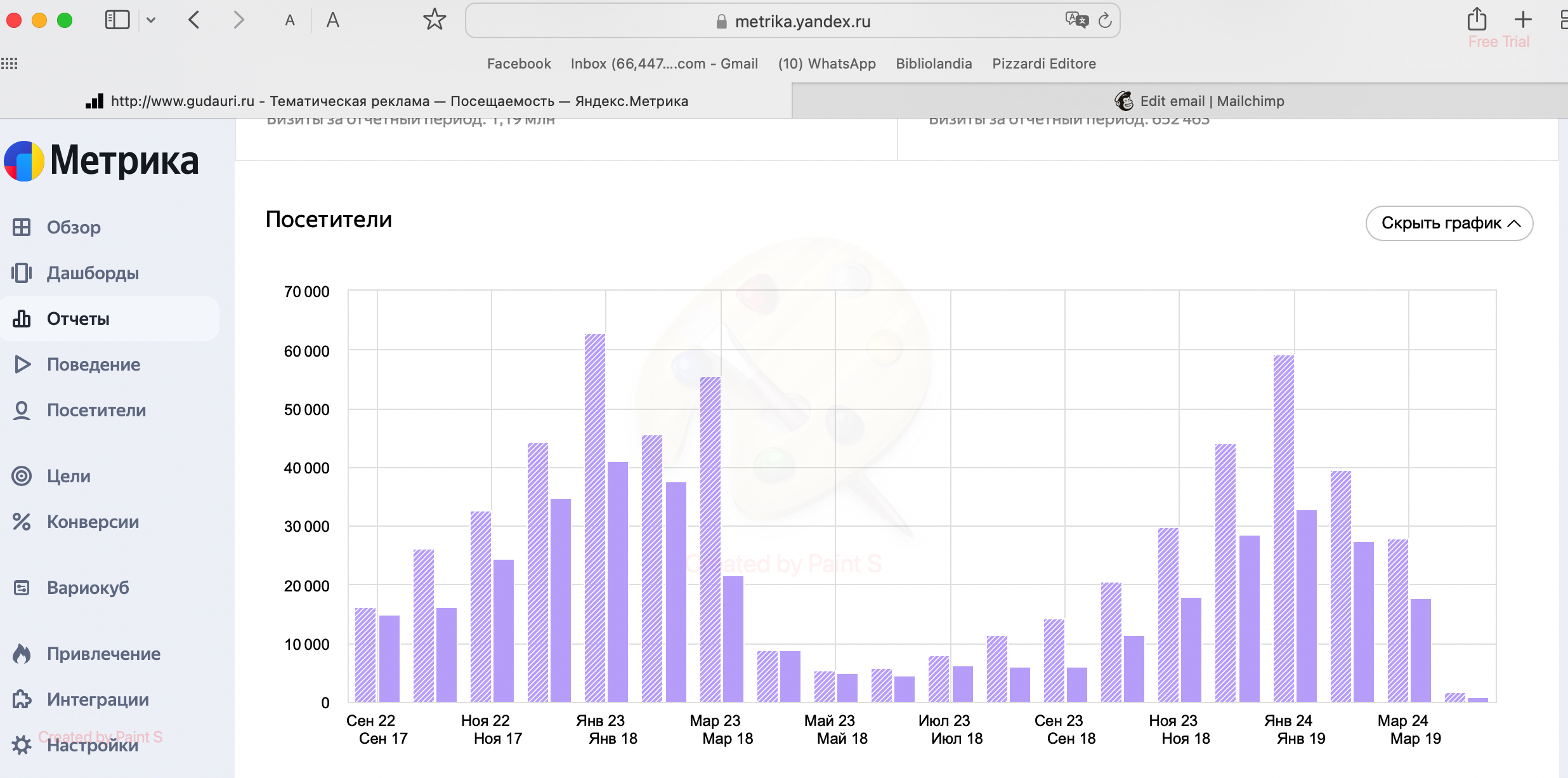 (не визитов, не кликов, а УНИКАЛЬНЫХ посетителей в месяц) посетивших сайт с 2 cентября 2017 по 2 апреля 2019, с посетителями новой реальности с 2 cентября 2022 по 2 апреля 2024