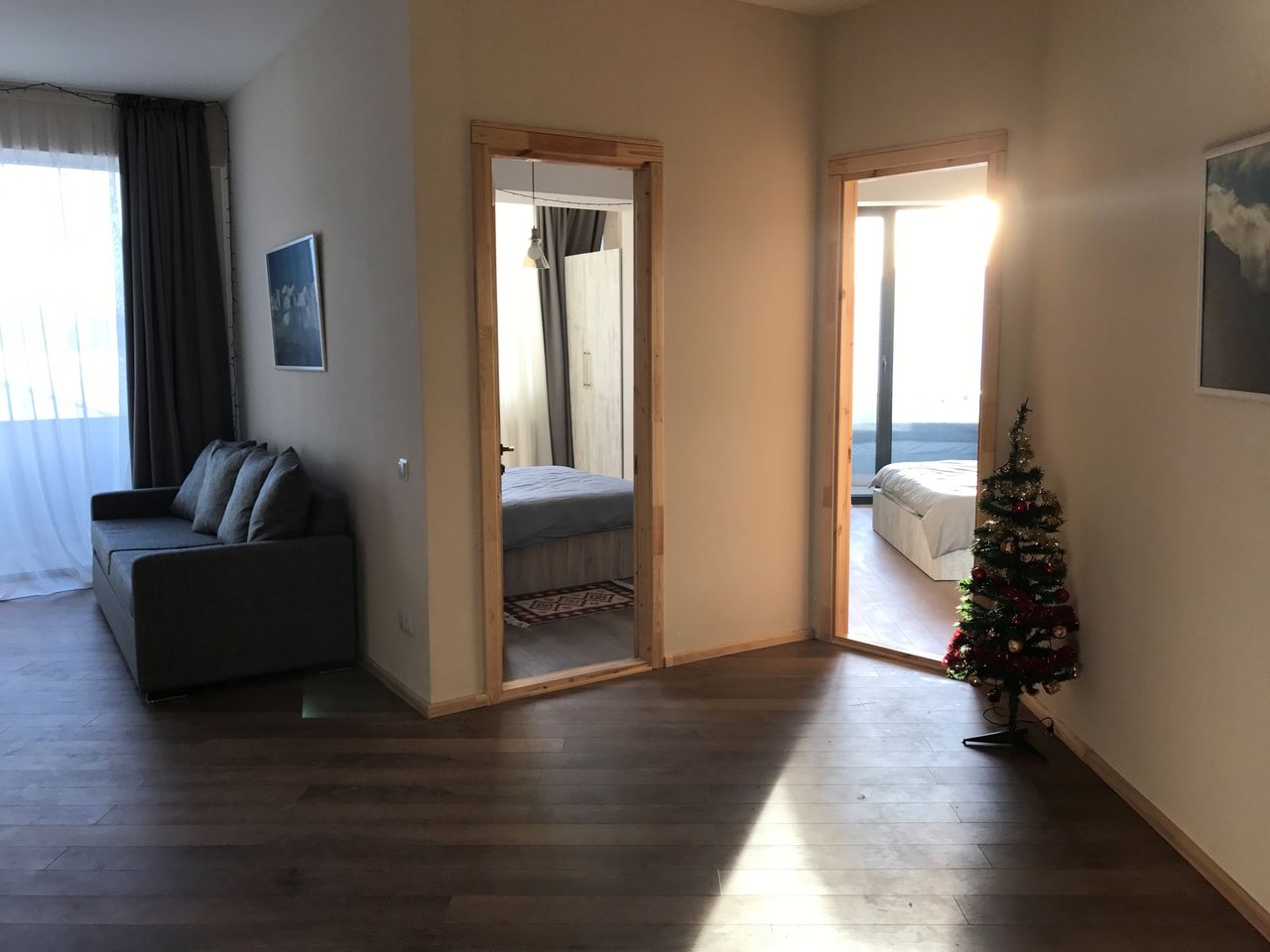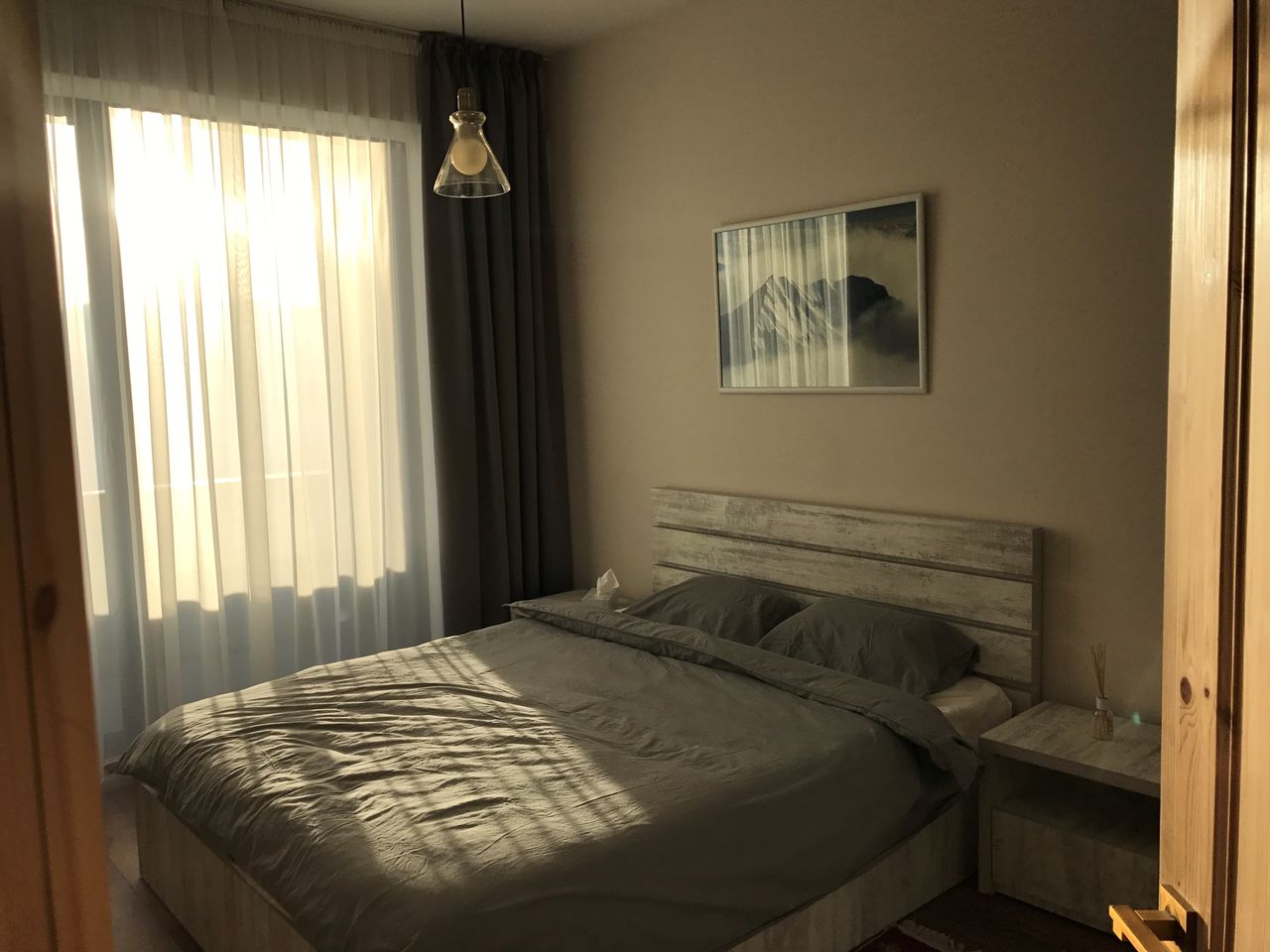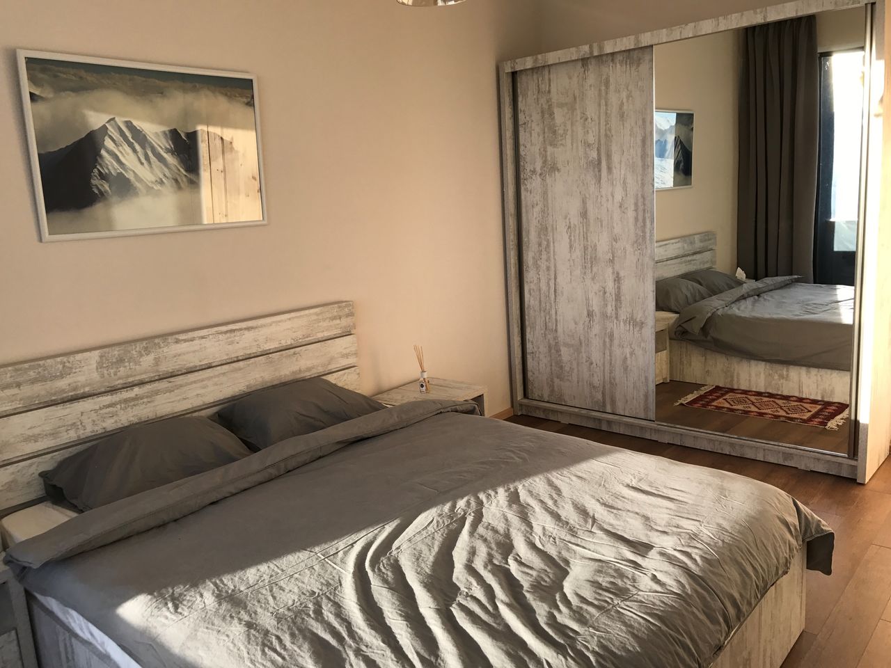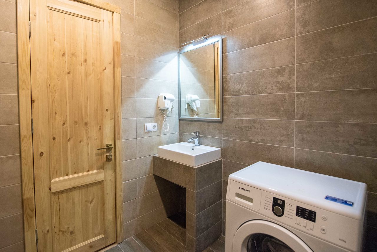 Оснащение: Просторные апартаменты (83 кв м) с двумя балконами и видом на горы на первом этаже IV корпуса в Новом Гудаури прекрасно подходят для комфортного размещения 4-7 человек. В двух больших больших спальных комнатах с двуспальными кроватями и очень большом пространстве гостиной, на двух диванах которой могут разместиться 3 человек, никто не почувствует себя стеснённым, будь то 2-3 пары, большая дружная семья или тёплая компания друзей. В апартаментах большое количество встроенных шкафов, где с лёгкостью можно разместить не только нижнее бельё и пару футболок, но и всю сноубордическую/горнолыжную одежду (для оборудования, разумеется, есть ски-депо) всех гостей, сохранив тем самым открытое пространство для общения, настольных игр и танцев. Кстати, соседей ПОД Вами нет, поэтому давать гопака, камаринского или танцевать лезгинку можно с полной самоотдачей. Часть гостиной занимает кухня, где есть всё необходимое и для приготовления ежедневных трапез (варочная панель, холодильник, чайник, кофеварка, сковороды, кастрлюли и тп) и для сервировки праздничного стола на всю компанию (бокалы для вина, для шампанского, стаканы для воды, тарелки, чашки, блюдца и тп). В апартаментах один совмещённый, но очень просторный санузел, оборудованный душем, к которому прилагаются мягчайшие банные полотенца. Ждём Вас для приятного отдыха в великолепном Гудаури.