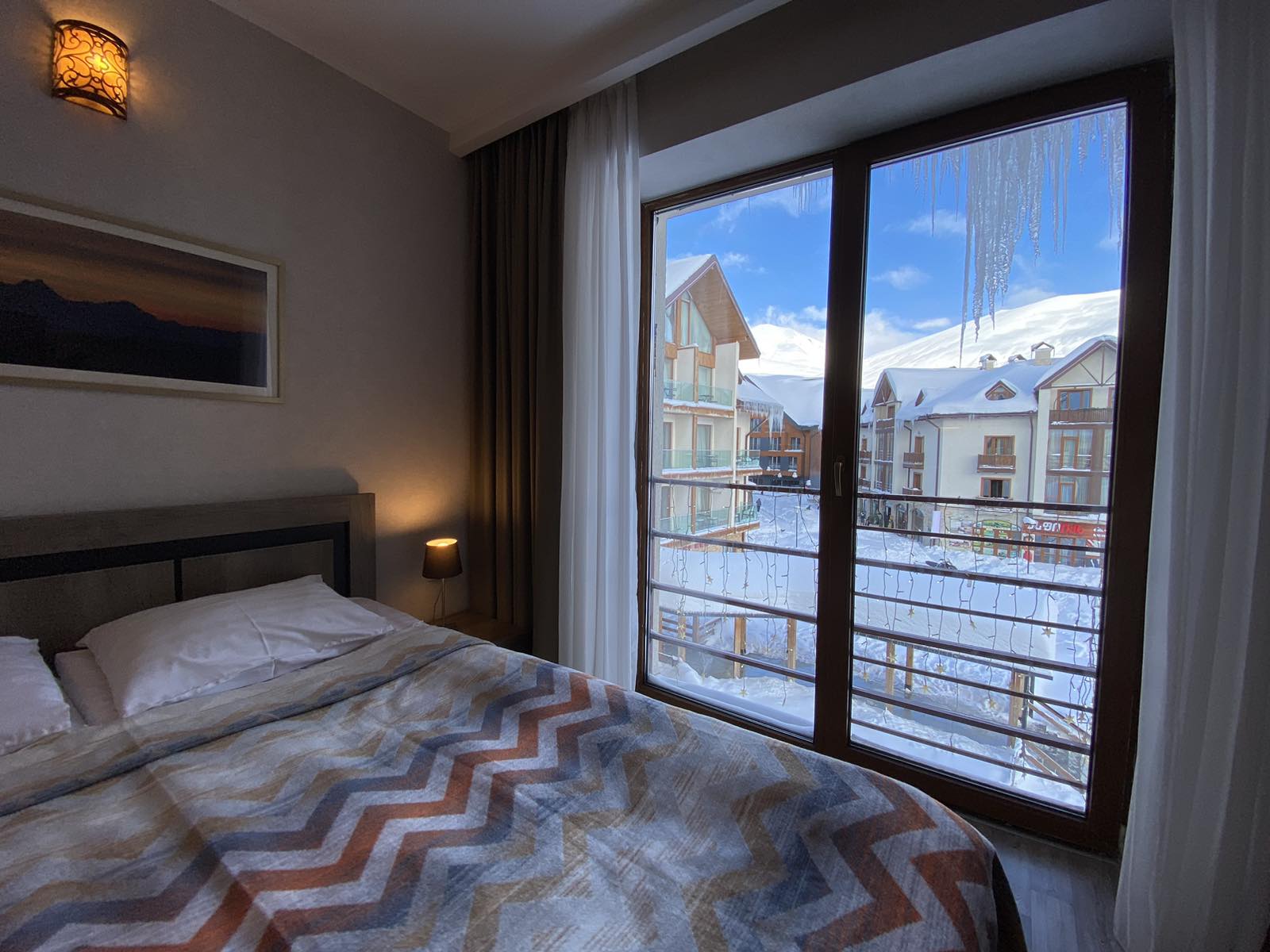Location: Apart Hotel New Gudauri 2 (REDCO) is located at an altitude of over 2,200 meters above sea level in the prestigious settlement of Gudauri. It is based in 2-minute walk from the new gondola cableway. An excellent restaurant with Georgian and European cuisine is located on the ground floor of the hotel. Tubing track for children and adults is also located near the house. There is a loop-line for the beginners and amateur skiers in a hundred meters from the house, and also there are two ski escalators for children near the cableway. There are a lot of cafés, pizzeria, wine house, as well as equipment rental, instructors and heli-skiing. Over-the-night cableway is available during weekend. The apartment is based on the 3rd floor. There is an elevator, round the clock security, personal Ski Depot (lockers) and parking. There is also central heating, hot and cold water all year round.The hotel has a restaurant, bar, SPA (sauna, pool, jacuzzi, massage, fitness) .
