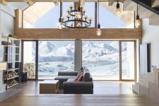 stunning mountain views and a private terrace, 3-bed rooms, 2-bed rooms, 5 bathrooms, lounge with a fireplace and a kitchen, ski depot,