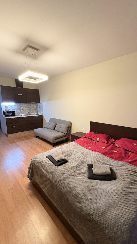 Оснащение: Квартира оснащена всем необходим для комфортного проживания. Чайник, душевая, фен, плита, посуда.