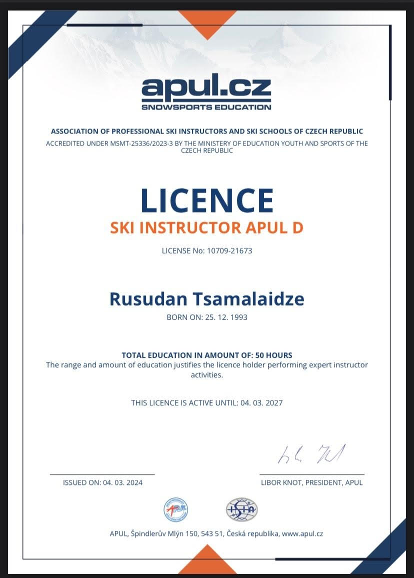 Руса Цамалаидзе: инструктор, Горные Лыжи.
